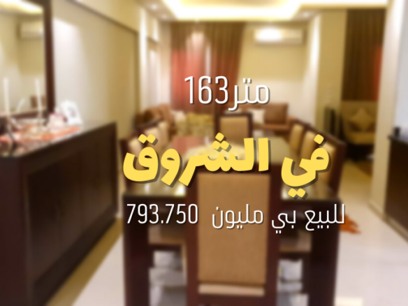 شقه للبيع في الشروق 163 متر تشطيب الترا سوبر لوكس